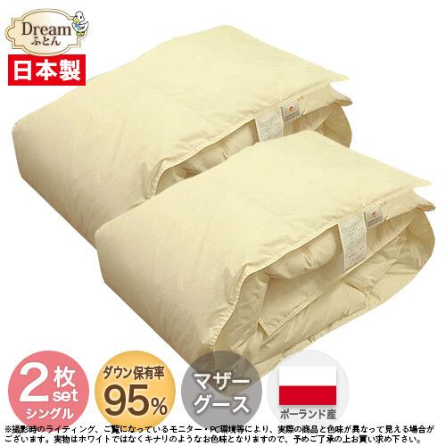 ダウンケット 羽毛肌掛け布団 お得なシングル2枚組 夏向け 日本製【送料無料】ポーランド産マザーホワイトグースダウン95% 立体キルト A706ZZ