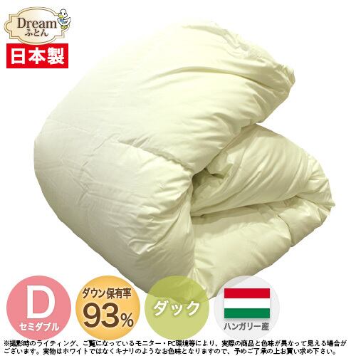 【日本製綿100%カバープレゼント】羽毛布団 セミダブル 日本製【送料無料】ハンガリー産ホワイトダックダウン93% 立体キルト A191DZ